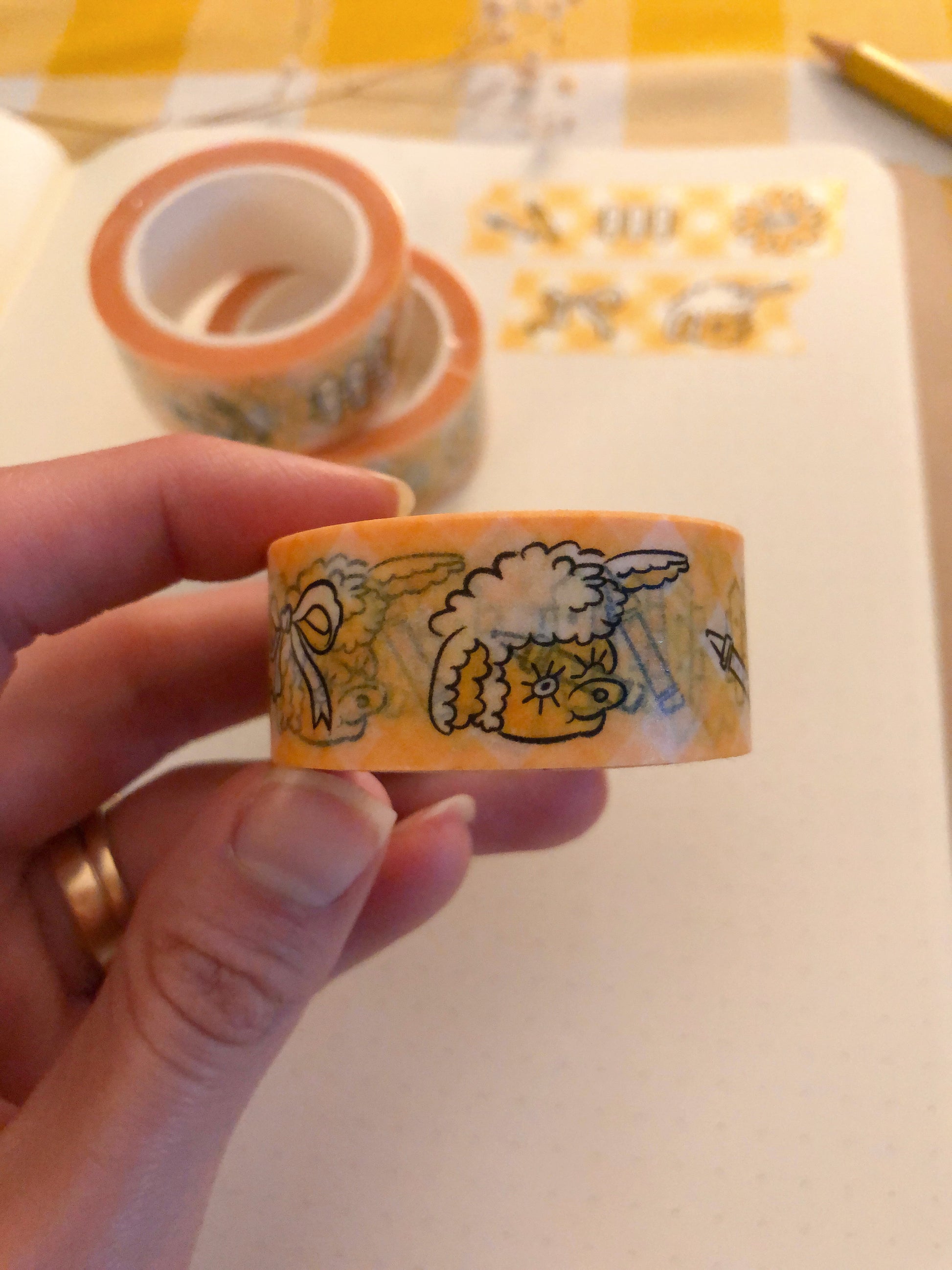 Cute Doodles Yellow Gingham Washi Tape