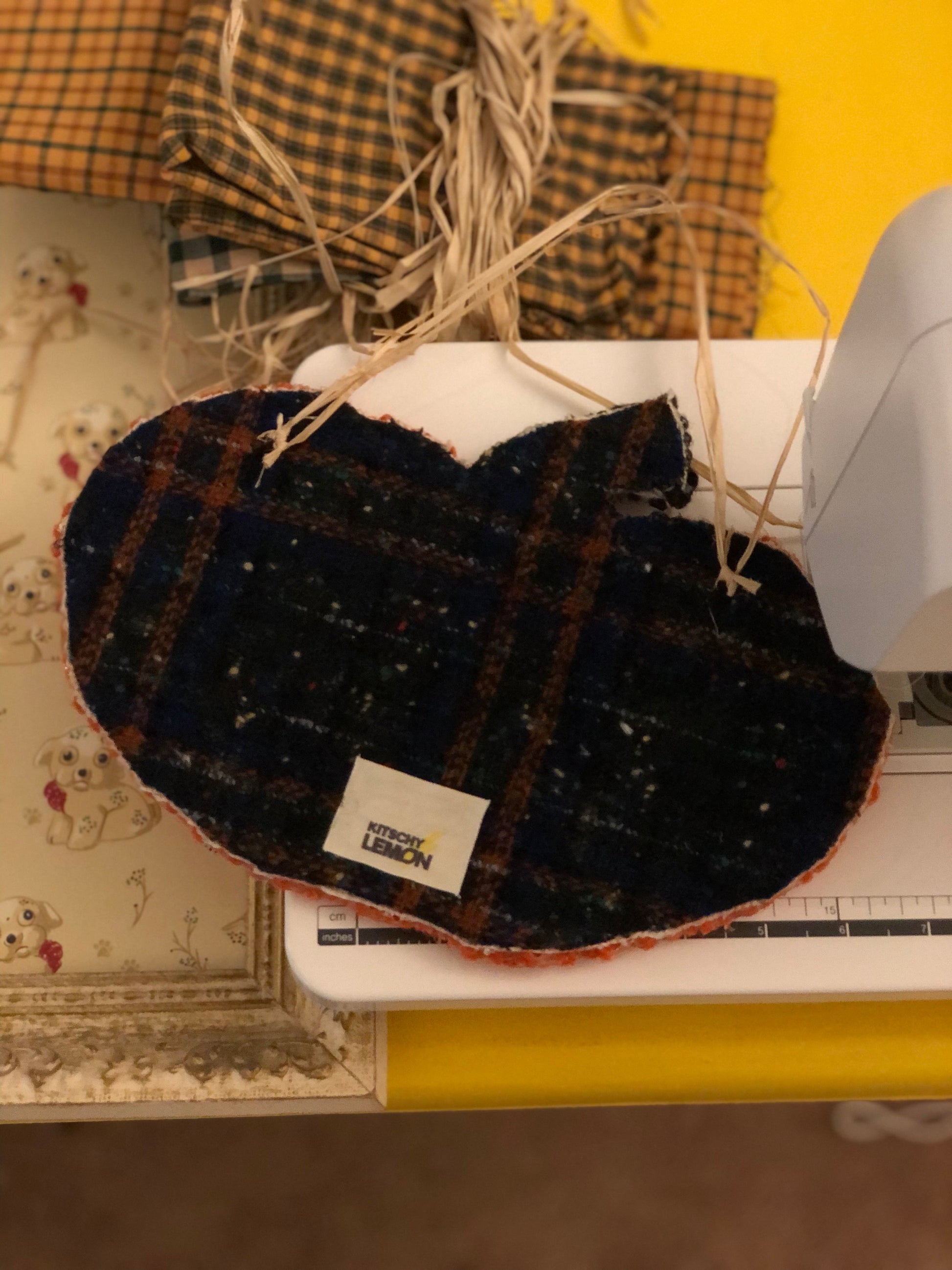 Add art and texture to any wall 🍂🎃. This handmade, wooly pumpkin can function as a hot pad too! Specially picked vintage fabric backing ♻️. Hanger is made of straw.
