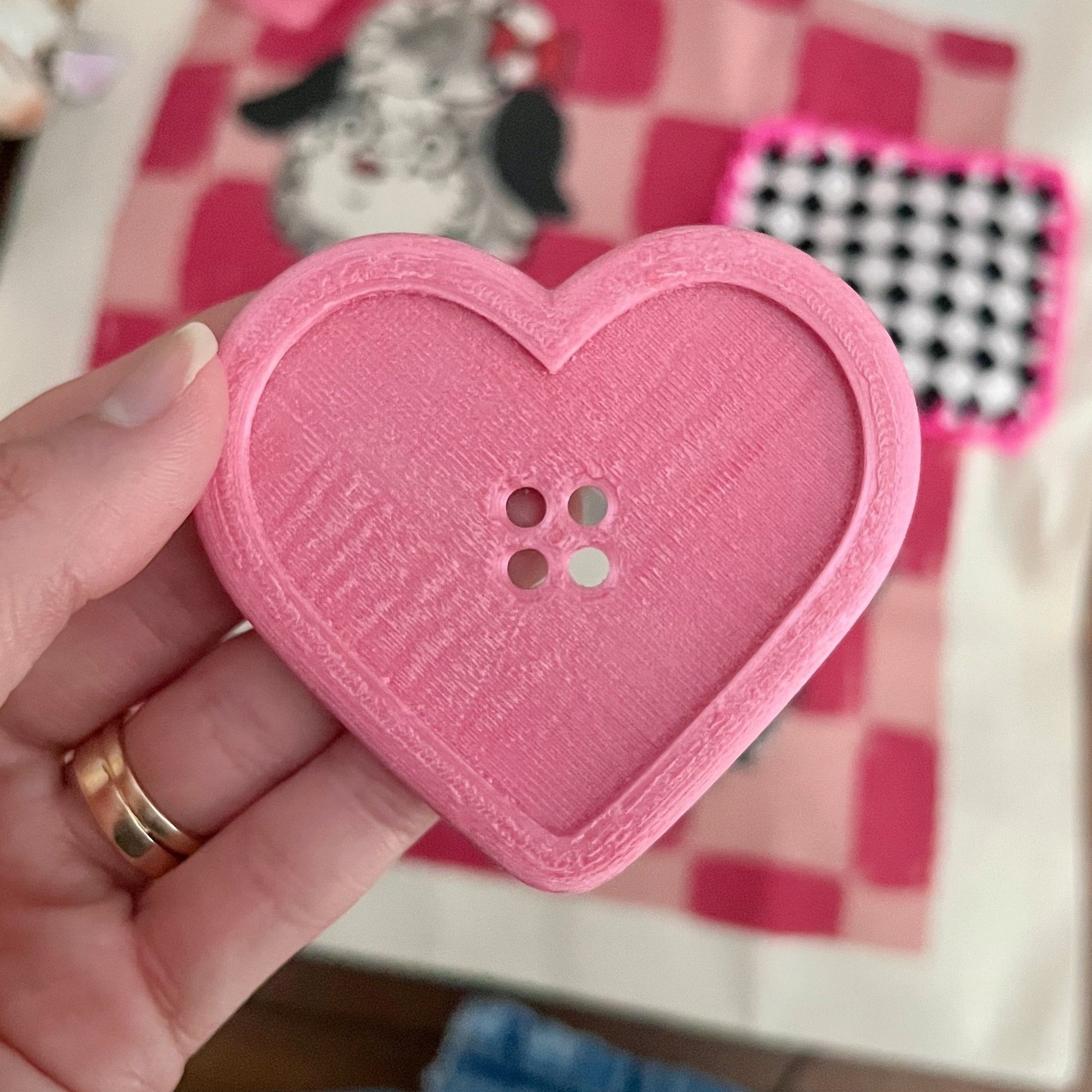 I couldn't find a large enough heart button, so I designed one myself! This listing is for 1 adorable extra large, 4 hole heart button; coming in at approximately 3 inches in diameter. It makes for a great statement button on any craft, fashion-piece, and so much more. Button is made of PLA, a bio-thermoplastic made from plant starch. Back of the button is flat. Order more than 1 at a time if you need and save on shipping.