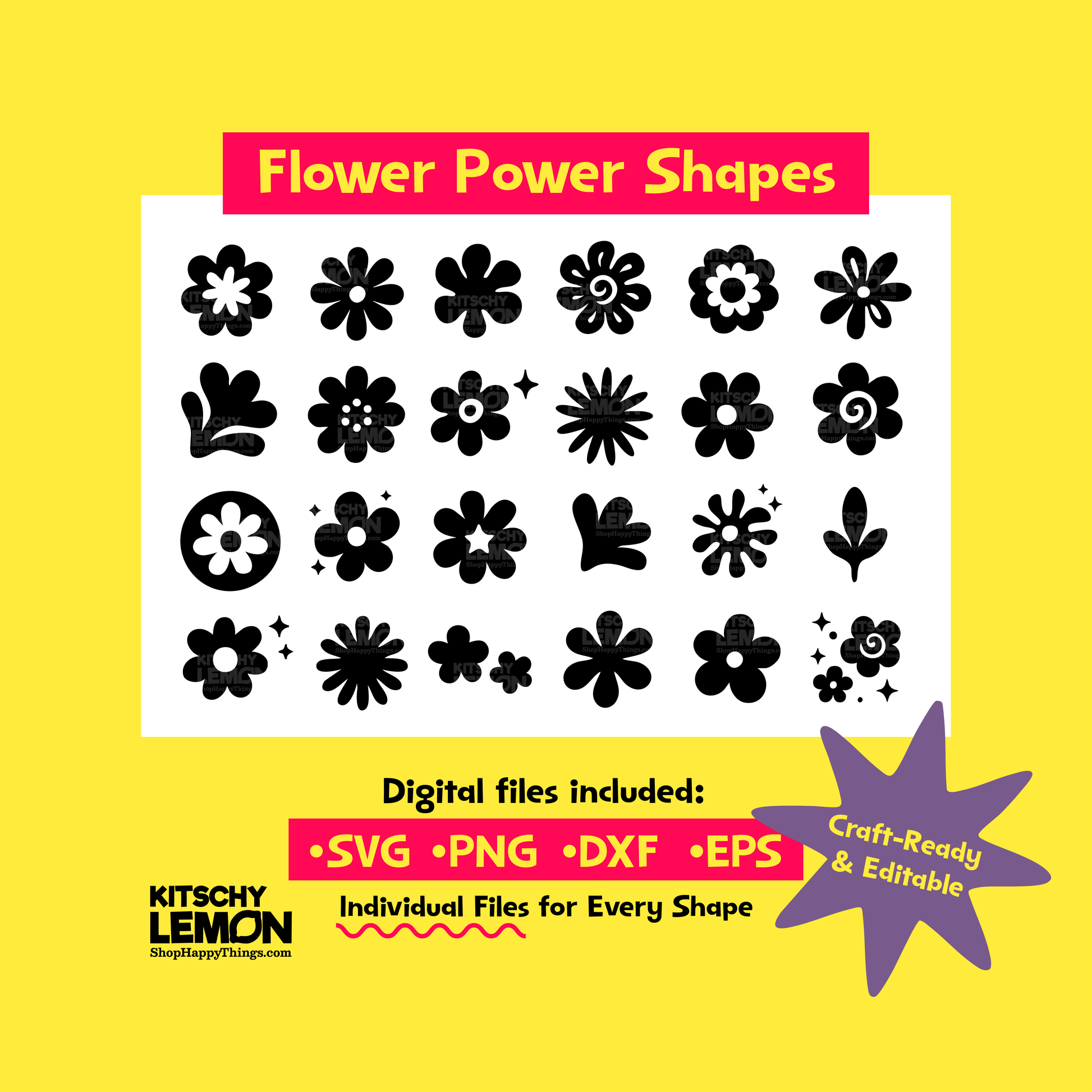 Flower Power Shape Bundle (SVG, PNG, DXF, & EPS)