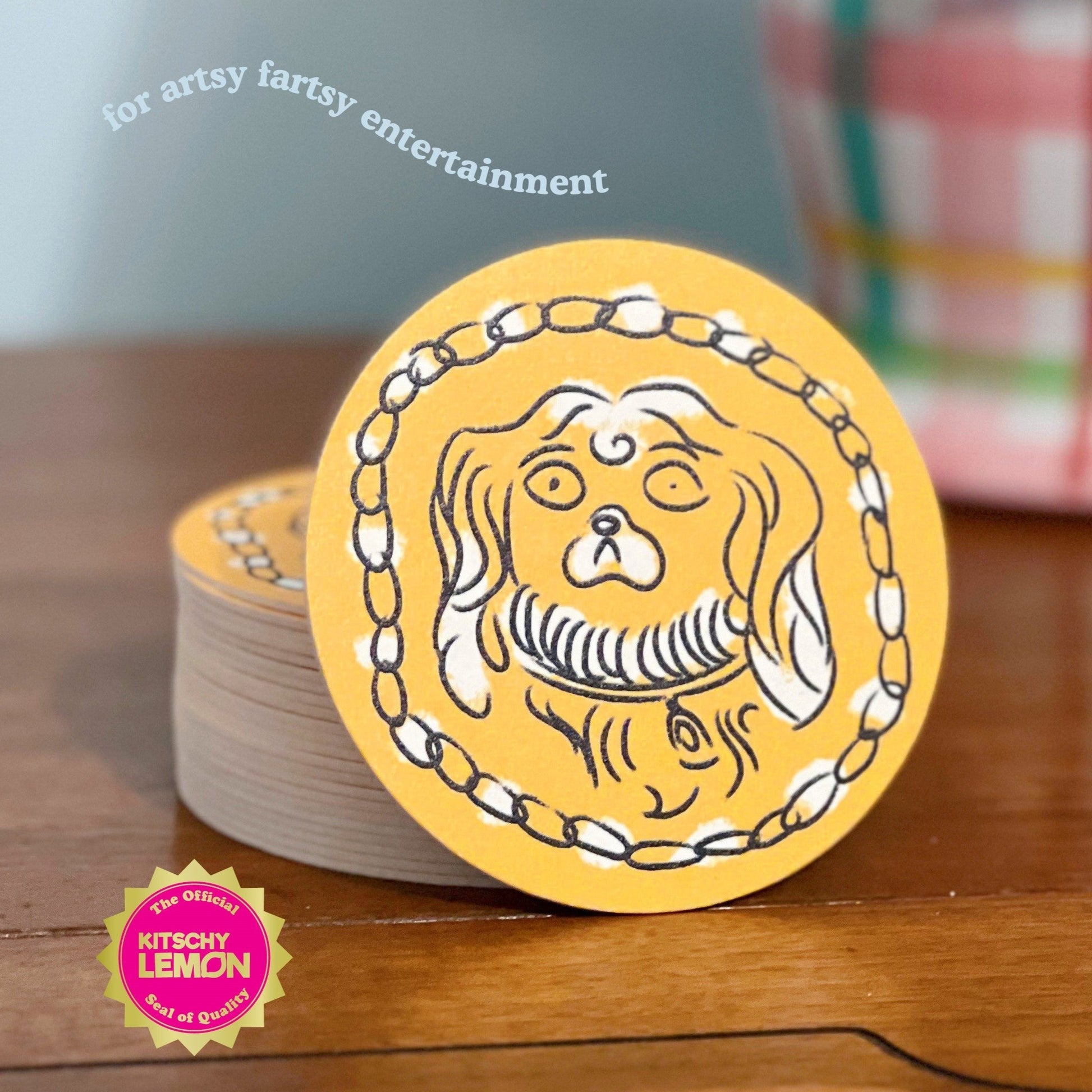 For your artsy fartsy entertainment ― With this fancy doodle of a Staffordshire dog as your coaster, you'll be the king or queen of any party.