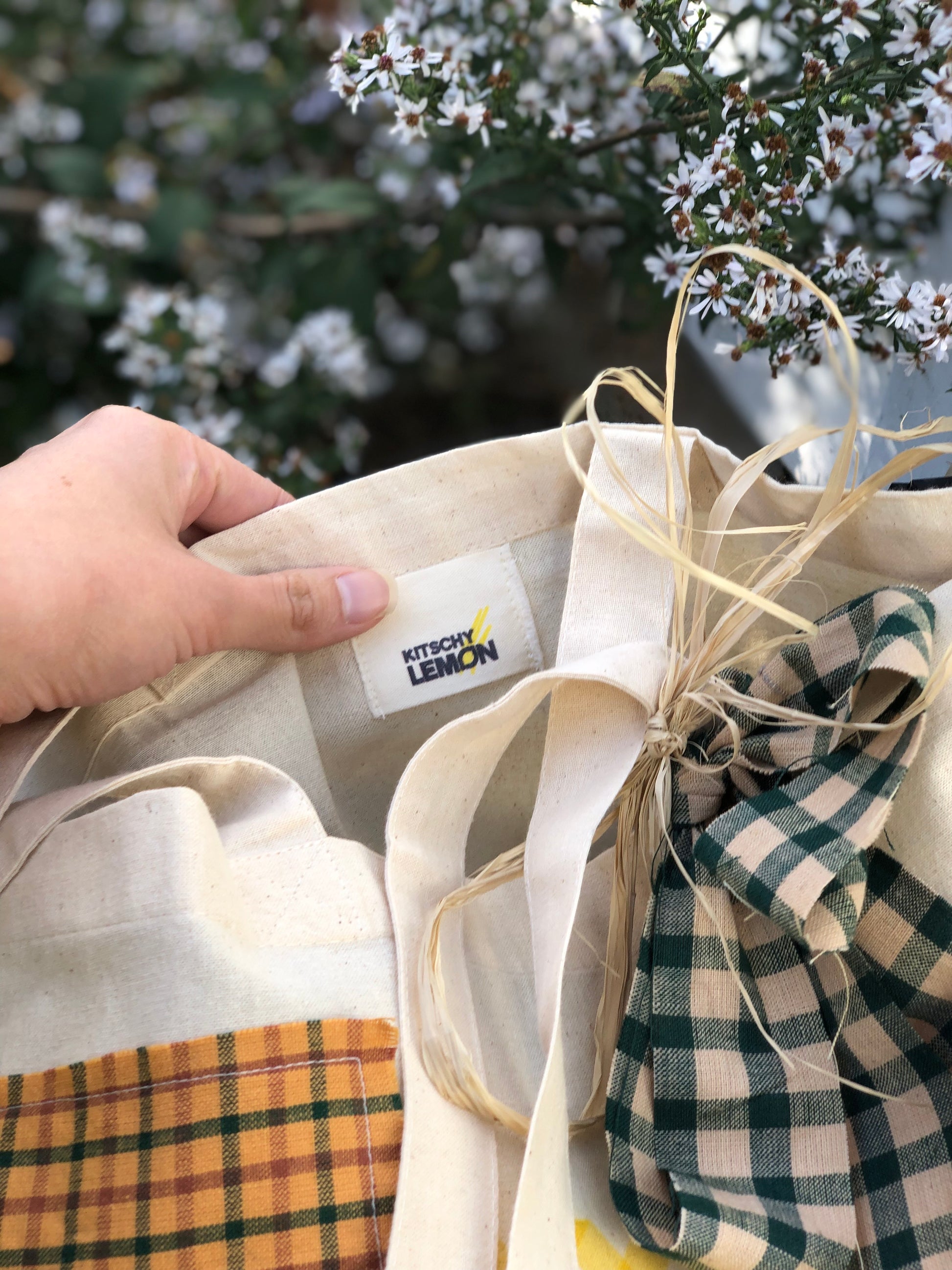 Cut down on the amount of litter with this reusable, canvas, tote bag! Each tote features vintage-found fabric squares and a big bow 💝! It's our idea of the perfect market bag, but use this tote where you can and say, "No thanks!" to plastic when you can ♻️🌎.
